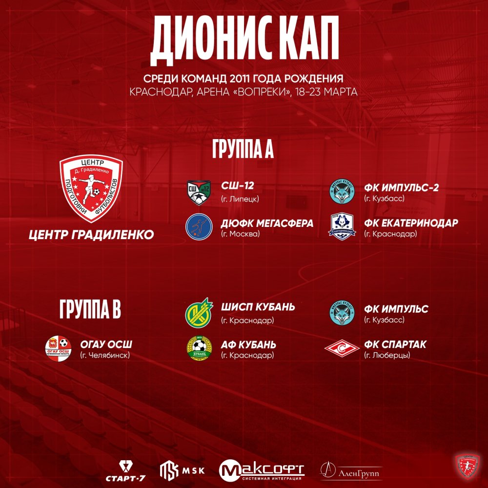 Весна - время набирать форму перед основными турнирами сезона. Накануне в Краснодаре на арене «Вопреки» стартовал всероссийский турнир среди команд 2011 г.р. «DIONIS CUP».