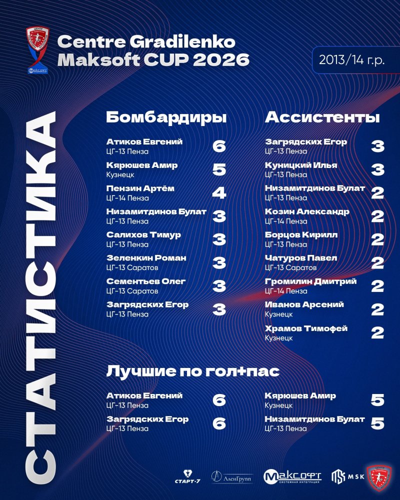 ЦИФРЫ CENTRE GRADILENKO-MAKSOFT CUP 2026 СРЕДИ КОМАНД 2013/14 Г.Р. ЦИФРЫ CENTRE GRADILENKO-MAKSOFT CUP 2026 СРЕДИ КОМАНД 2013/14 Г.Р.